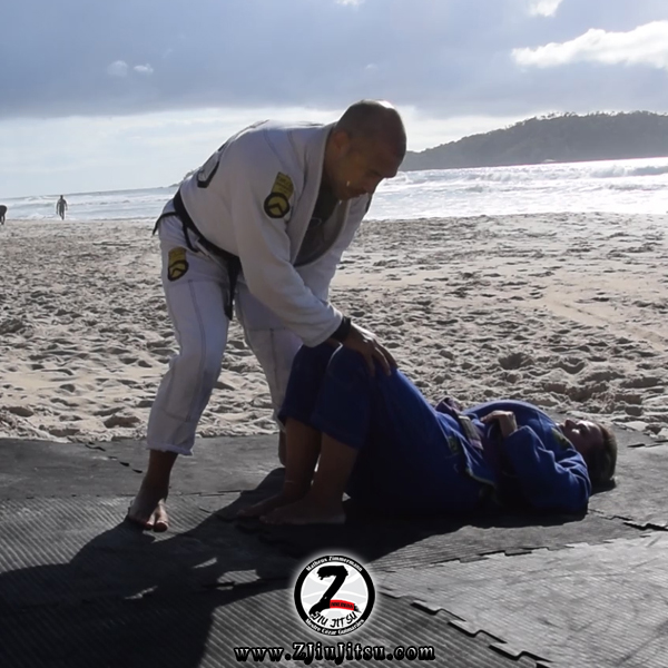 Um detalhe muito importante é passar a perna por cima, subindo e pisando ao lado do quadril. Evite passar a perna pelo lado, pois ela poderá abrir a perna e coloca-lo novamente na guarda.