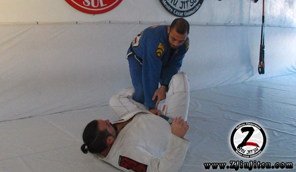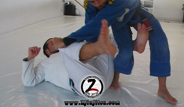 Sempre que ensino está posição alguém me pergunta sobre a pegada do adversário, se ela deve ser realizada na calça ou no calcanhar. Minha resposta é sempre a mesma, se o adversário estiver com a pegada na calça, é melhor você trocar a passagem de guarda pois com o chute dificilmente irá estourá-la, e inclusive já presenciei diversas raspagens ocorrerem por conta desta tentativa de estourar a pegada da calça.